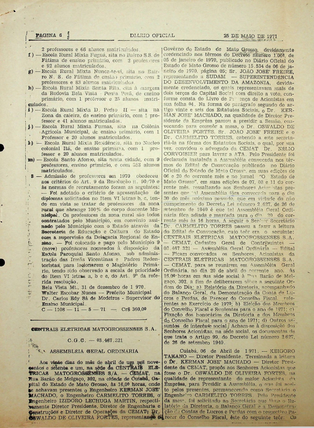 Registros da Assembleia Geral Ordinária da CEMAT de abril de 1971