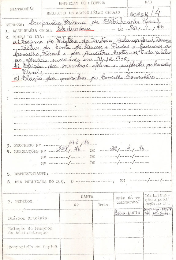 Registro da Assembleia Geral Ordinária da COBER de abril de 1976