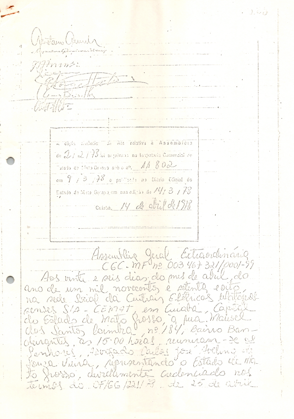 Registros da Assembleia Geral Extraordinária da CEMAT de abril de 1978
