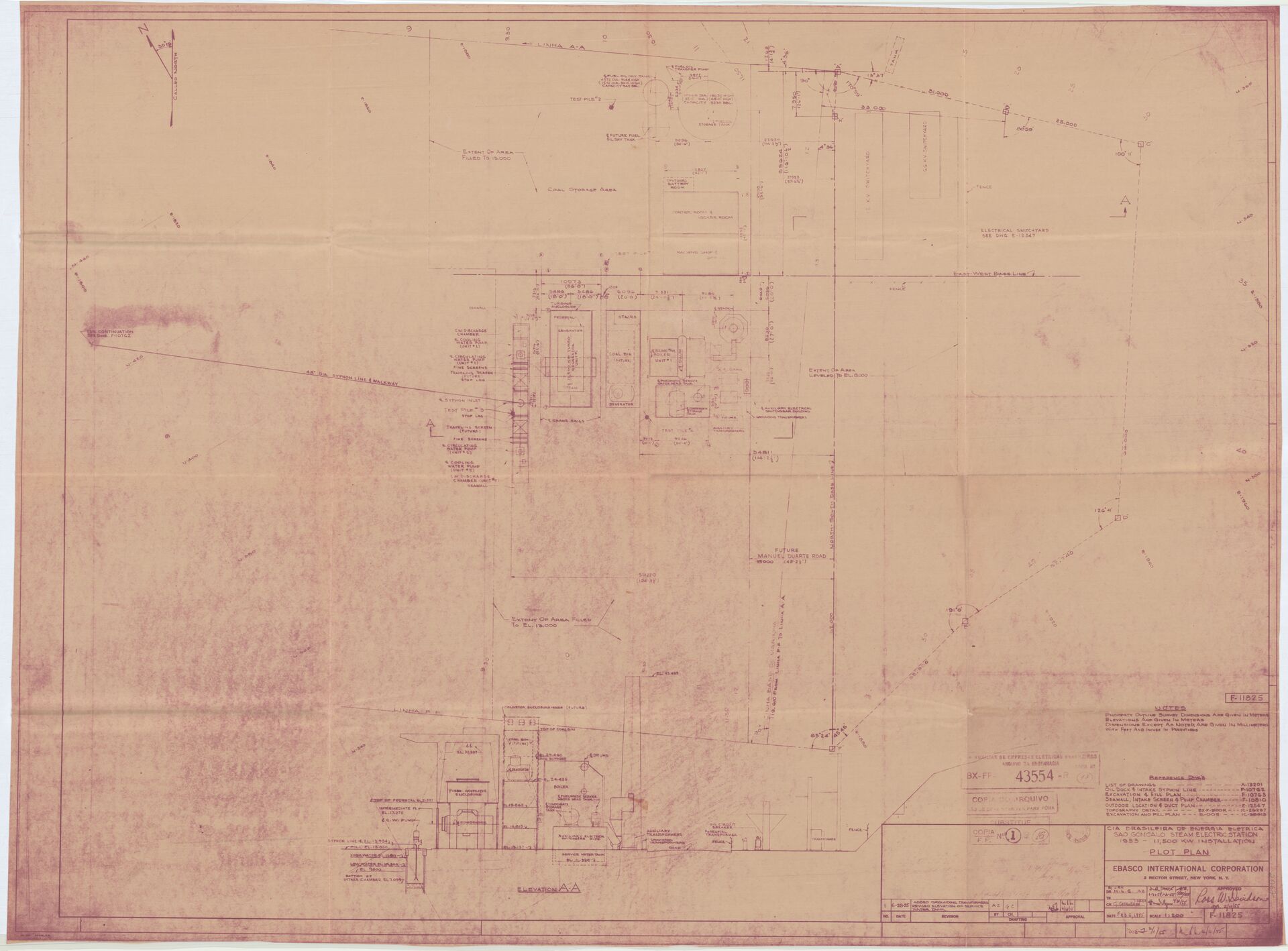Documentação técnica referente a parte civil da instalação da subestação São Gonçalo - 1953 - 11.500KW, Rio de Janeiro.