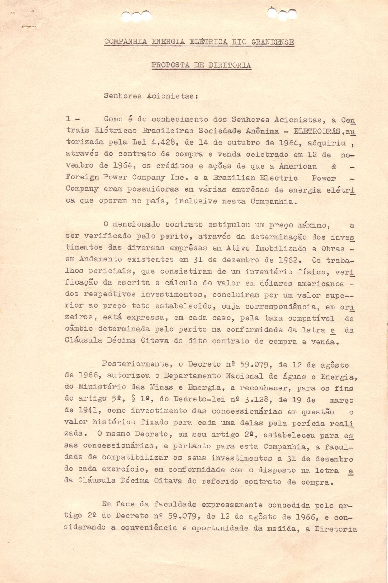 Documentos relativos à Assembleia Geral Extraordinária da Companhia de Energia Elétrica Rio Grandense - CEERG, contendo a proposta da Diretoria de aumento do capital social da empresa, incluindo a ata da referida Assembleia publicada em Diário Oficial.