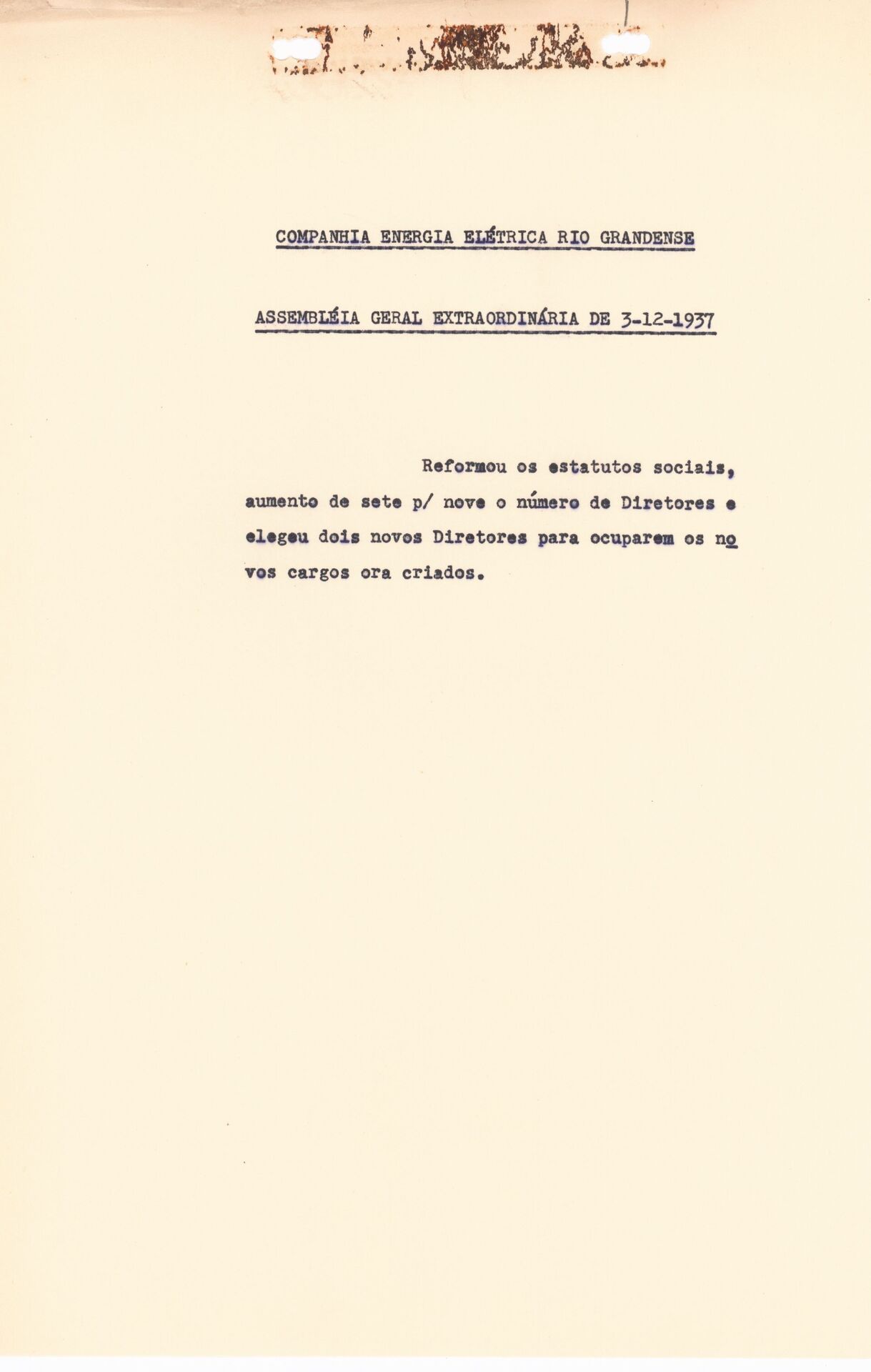 Registro da Assembleia Geral Extraordinária da Companhia de Energia Elétrica Rio Grandense de dezembro de 1937