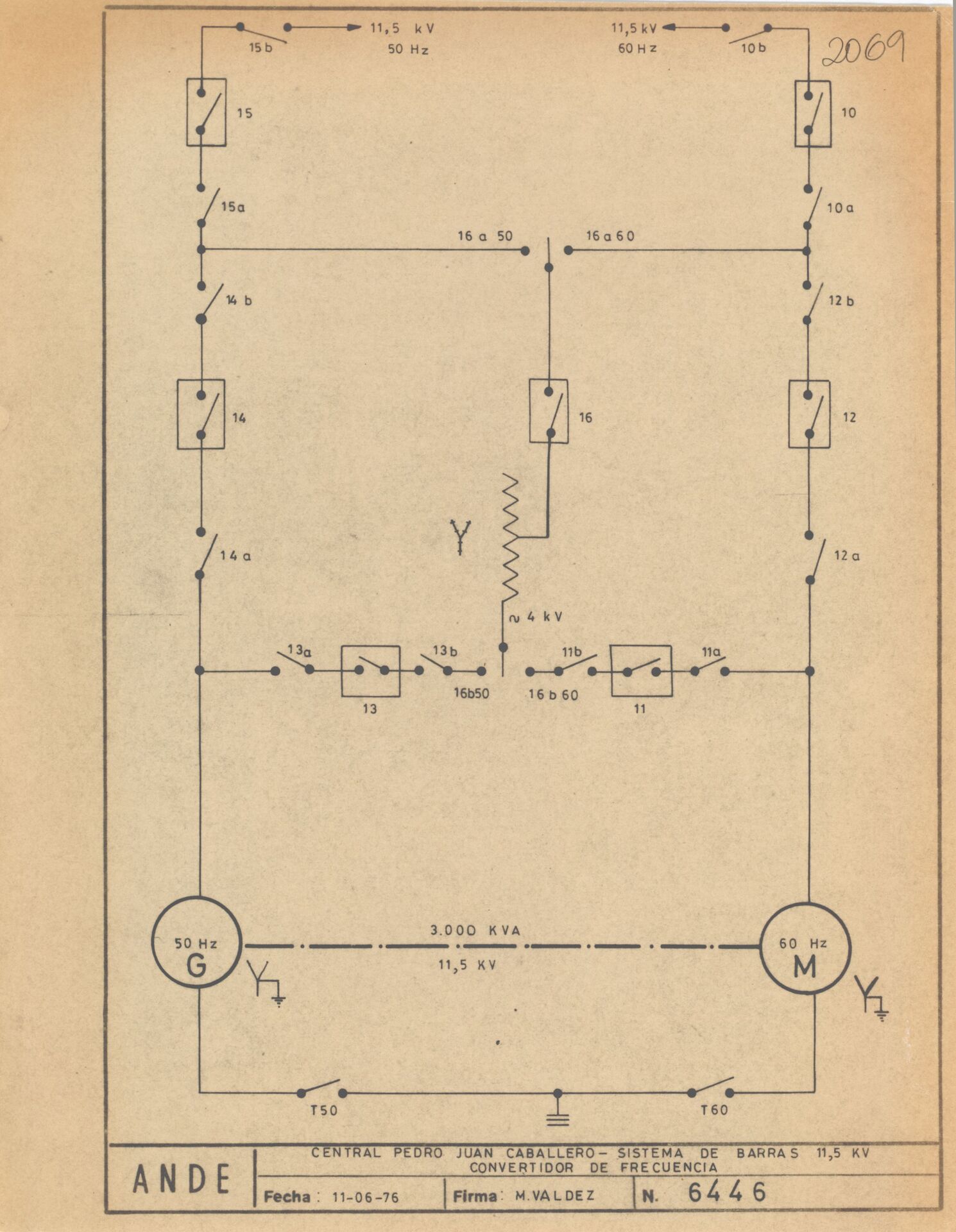 Documentos referentes a um exemplo de sistema de conversão de frequência por barras da Central Pedro Juan Caballero, reunida pelo Grupo Coordenador para Operação Interligada – Rio de Janeiro. A documentação registra aspectos conceituais e técnicos do sistema, no contexto dos estudos e das iniciativas voltadas à operação interligada dos sistemas elétricos.