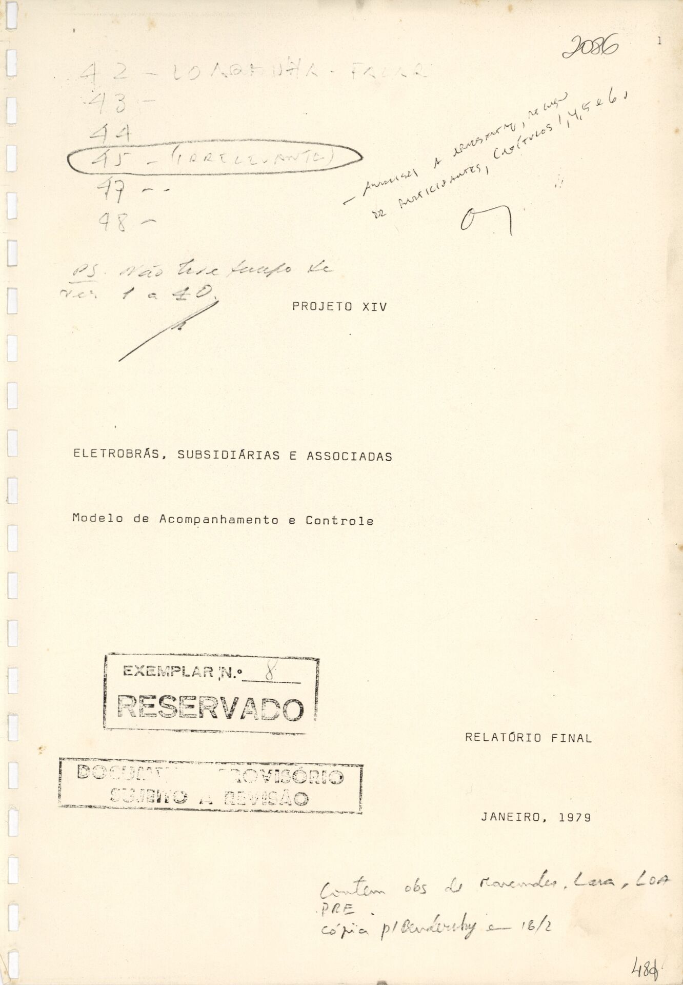 Documentos referentes aos rascunhos do relatório final relativos à pesquisa de desenvolvimento do modelo de acompanhamento e controle empresarial das subsidiárias e associadas, contendo versões preliminares, anotações técnicas e ajustes preparatórios para consolidação do documento final.