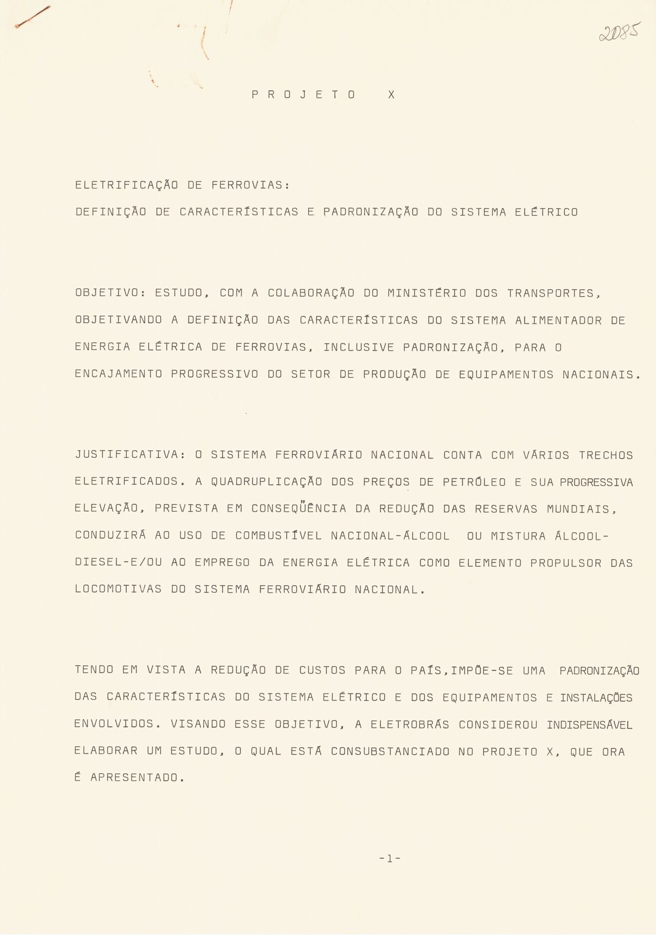 Documentos referentes às minutas dos relatórios da comunicação intitulada “A tarifa de energia elétrica na eletrificação de ferrovias”, compreendendo versões preliminares e originais ainda em processo de revisão, com registros de análises, comentários e ajustes realizados nas etapas que antecederam a consolidação final do material.