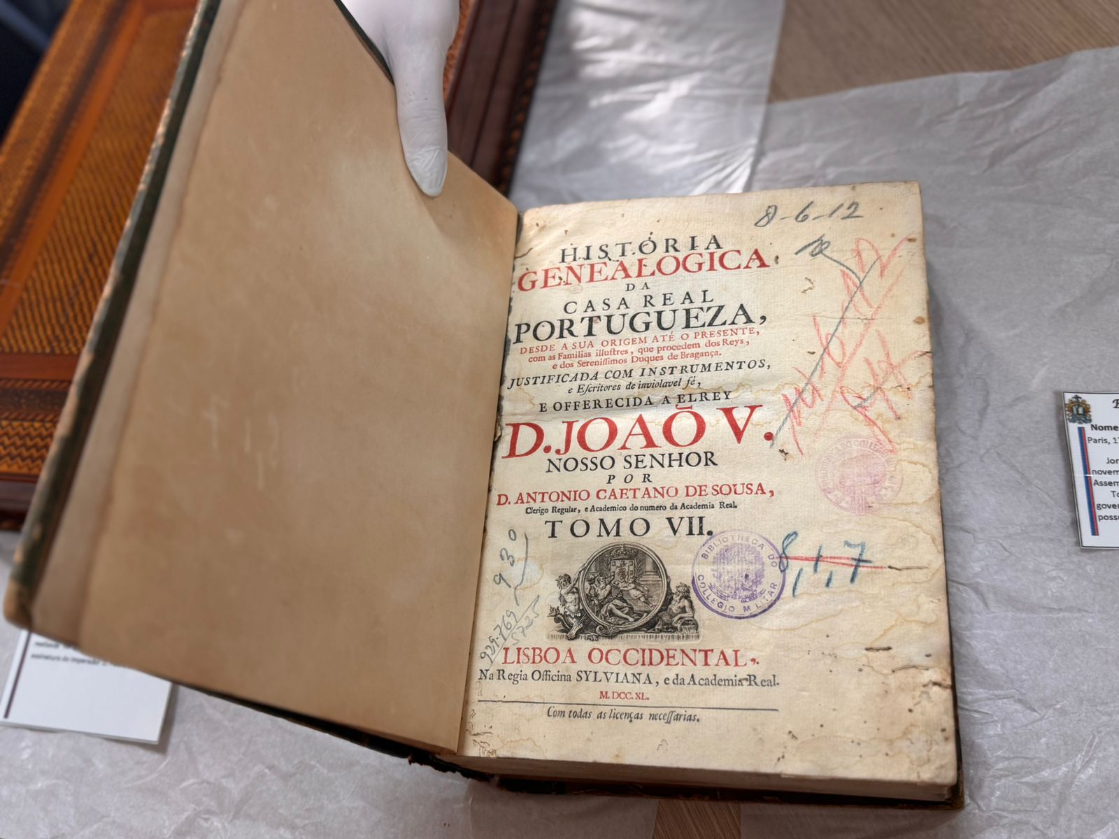 Durante a visita, as bibliotecárias da Memória da Eletricidade tiveram a oportunidade de conhecer de perto o acervo de obras raras da BIBLIEx. Entre os destaques, um exemplar datado de 1592, impresso em folha de trapo — técnica artesanal anterior ao uso do papel de celulose — e publicações da época da família real, cuidadosamente preservadas sob rigorosos critérios de conservação.
