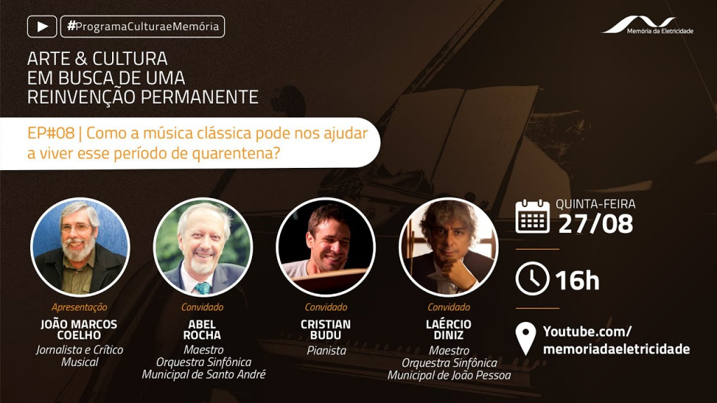 A live de quinta-feira, 27 de agosto, mostrou que a música clássica está encontrando soluções inéditas para lidar com uma situação inédita. Os dois maestros – Abel Rocha, titular da Orquestra Sinfônica de Santo André, e Laércio Diniz, titular da Orquestra Sinfônica Municipal de João Pessoa – e o pianista Cristian Budu adotaram posturas diferenciadas que podem servir de exemplo para a comunidade musical brasileira.