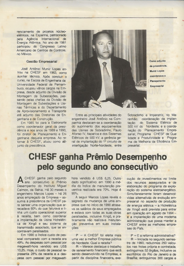 Documento sobre a reestruturação da Companhia Hidro Elétrica do São Francisco, que aconteceu no início dos anos de 1990.