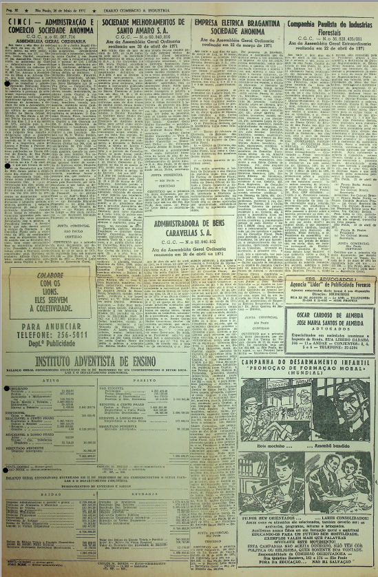 Documentos referentes à Assembleia Geral Ordinária da Empresa Elétrica de Bragantina - EEB, realizada em 22 de março de 1971, tendo como ordem do dia o exame dos relatórios do balanço das contas do exercício de 1970, eleição da Diretoria, do Conselho Fiscal e fixação dos seus honorários, além de outros assuntos de interesse da empresa.