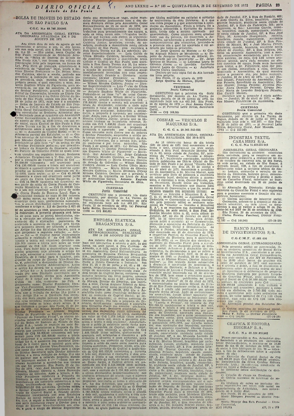 Documentos referentes à Assembleia Geral Extraordinária da Empresa Elétrica de Bragantina - EEB, realizada em 14 de agosto de 1972, tendo como ordem do dia o aumento do capital social, reforma do estatuto e outros assuntos de interesse da empresa.