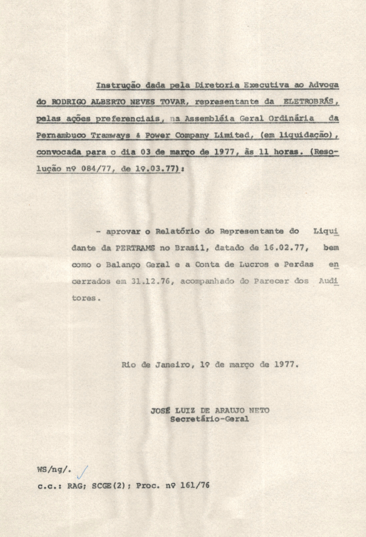 Registro de Assembleia Geral Ordinária da Pernambuco Tramways & Power Company Limited de março de 1977