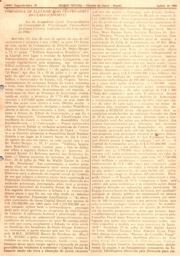 Registro de Assembleia Geral Extraordinária da CENORTE agosto de 1966