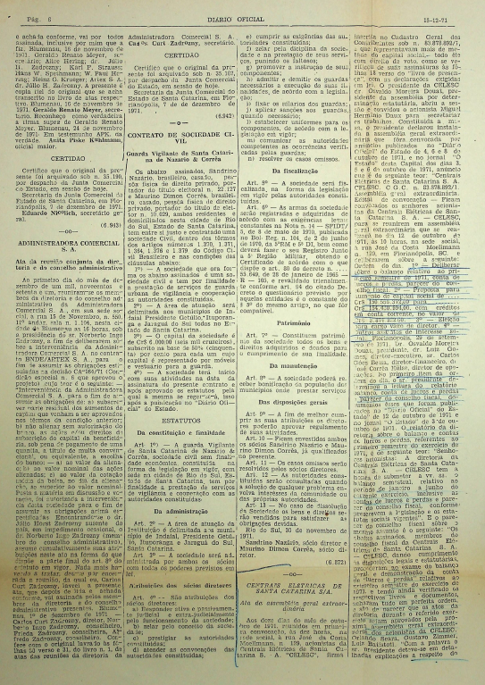 Registro de Assembleia Geral Ordinária da CELESC de outubro de 1971