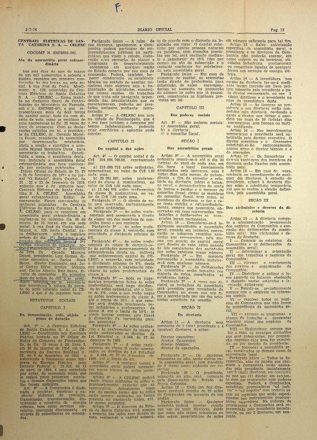 Registro de Assembleia Geral Extraordinária da CELESC de março de 1974