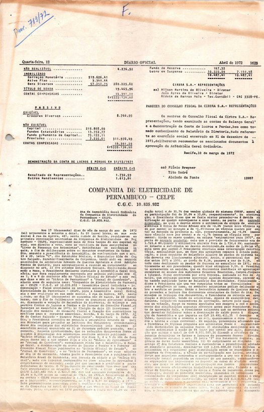 Registro de Assembleia Geral Ordinária da CELPE de abril de 1972