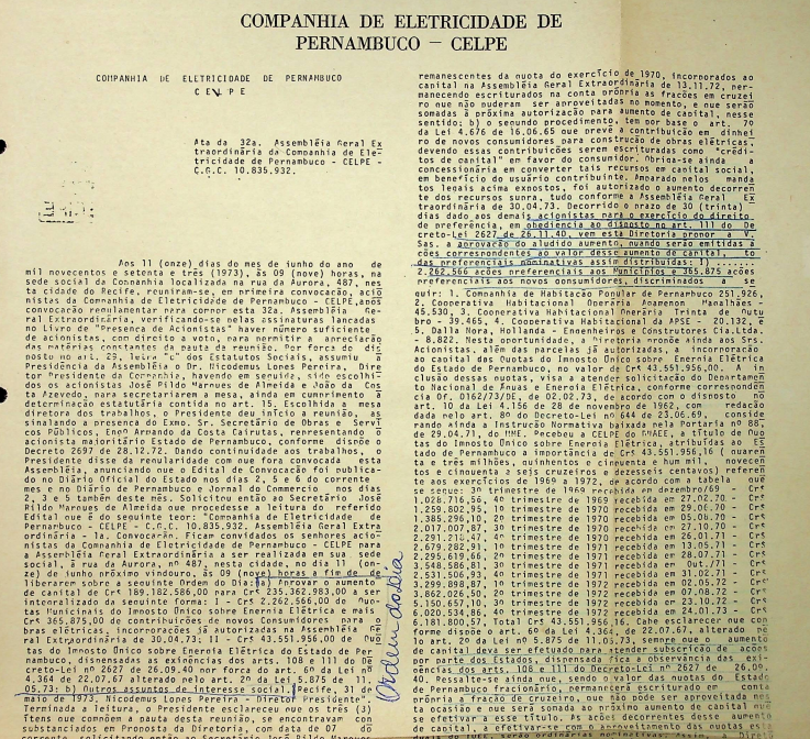 Registro de Assembleia Geral Extraordinária da CELPE de junho de 1973