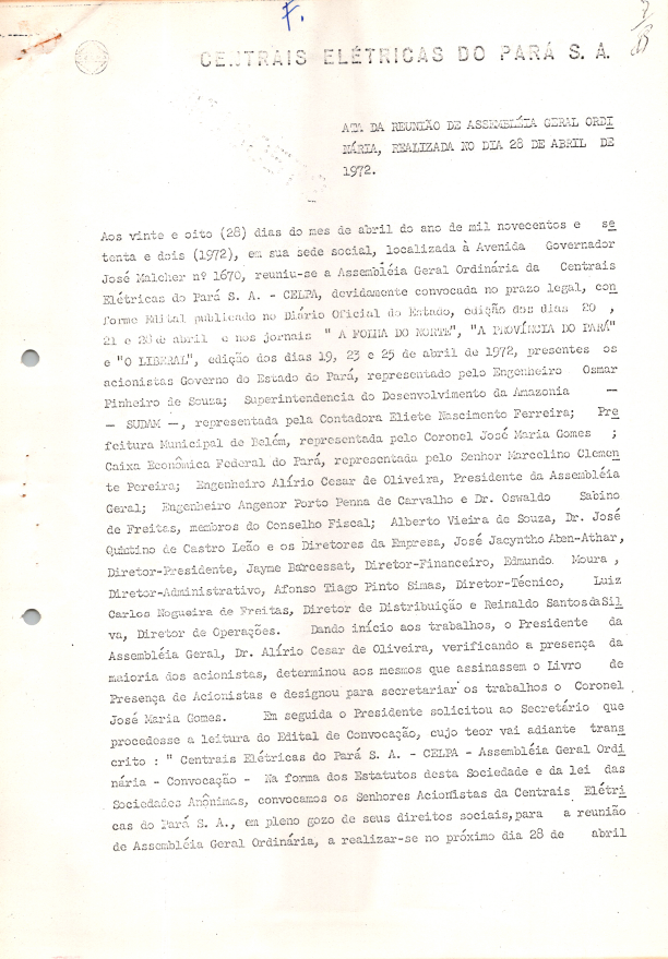 Registro de Assembleia Geral Ordinária da CELPA de abril de 1972