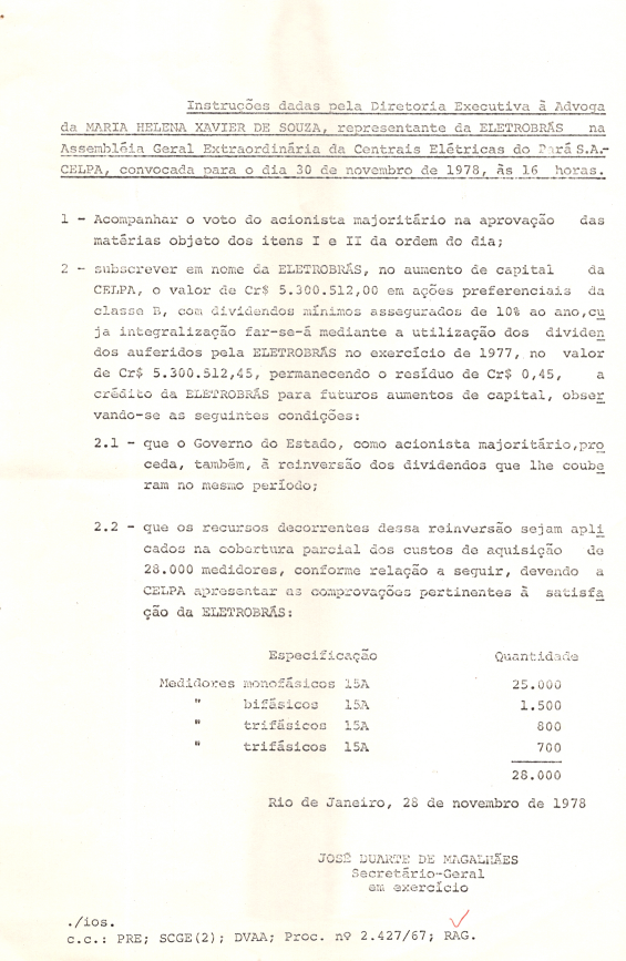 Registro da Assembleia Geral Extraordinária da CELPA de novembro de 1978
