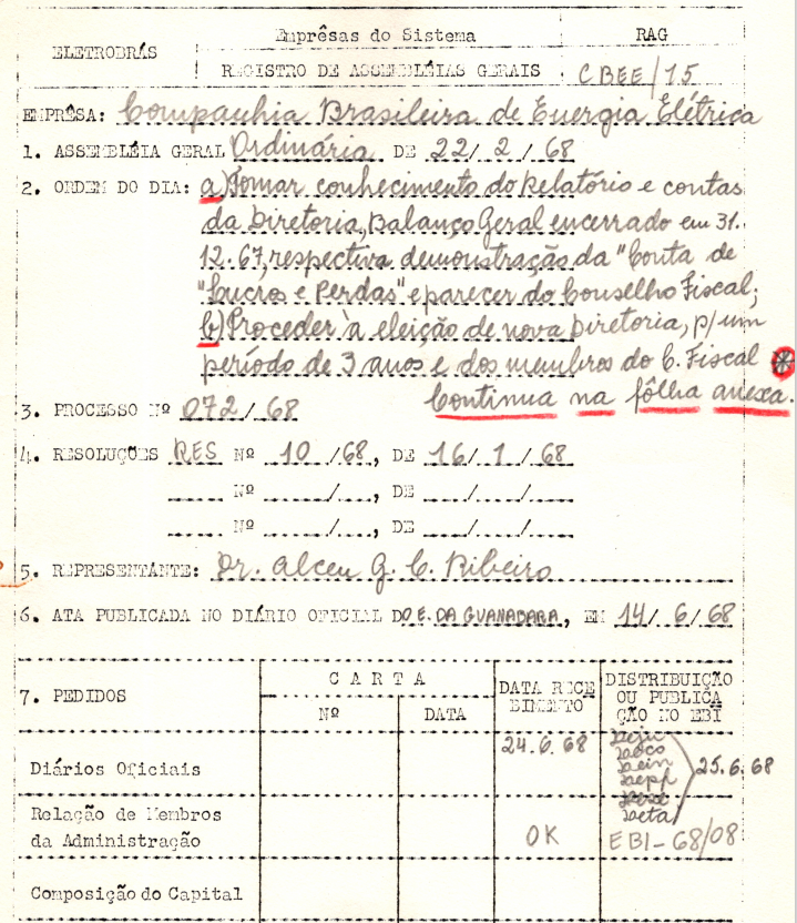 Registro da Assembleia Geral Ordinária da CBEE de fevereiro de 1968
