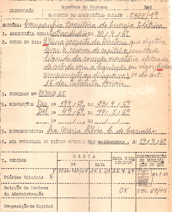 Registro da Assembleia Geral Extraordinária da CBEE de abril de 1969
