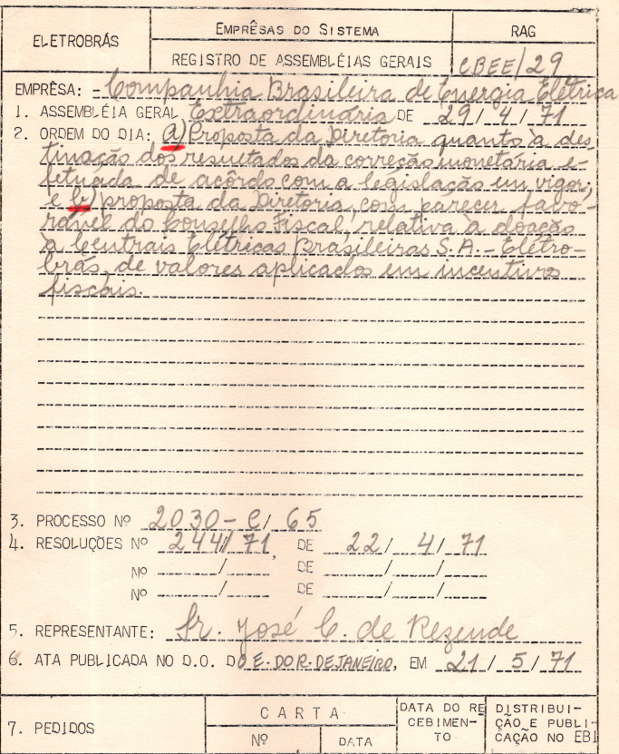 Registro da Assembleia Geral Extraordinária da CBEE de abril de 1971