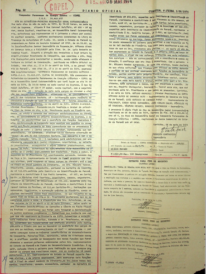 Registro de Assembleia Geral Extraordinária da COPEL de maio de 1974