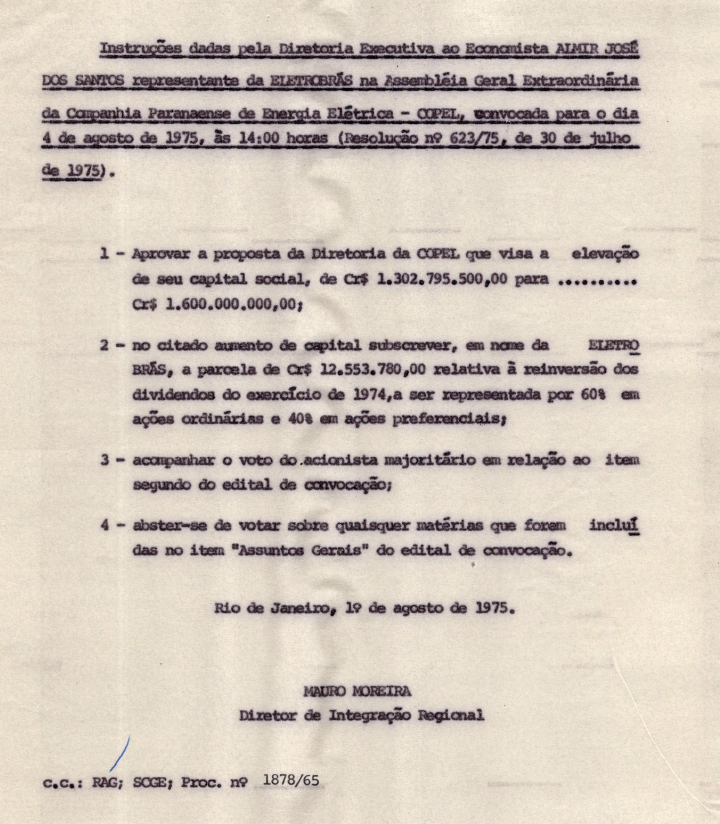 Registro de Assembleia Geral Extraordinária da COPEL de agosto de 1975