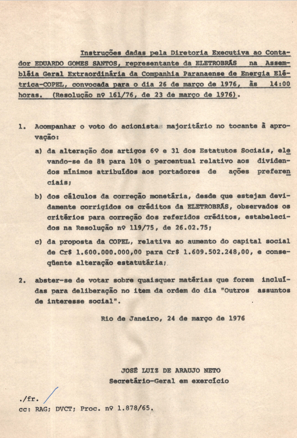 Registro de Assembleia Geral Extraordinária da COPEL de março de 1976