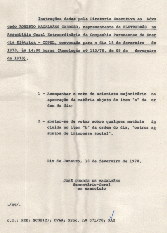 Registro de Assembleia Geral Extraordinária da COPEL de fevereiro de 1978