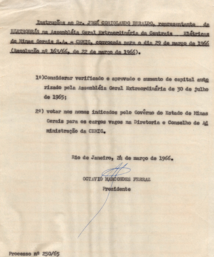 Registro de Assembleia Geral Extraordinária da CEMIG de março de 1966