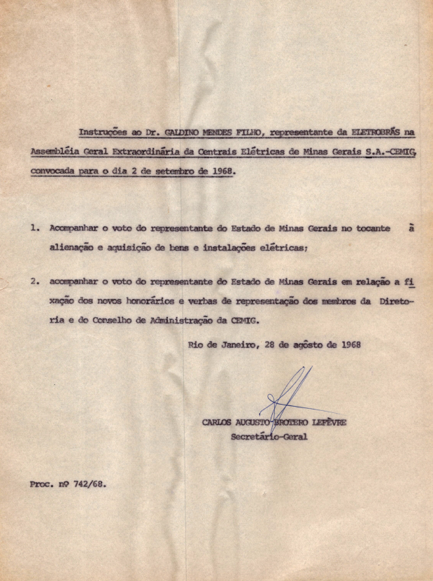 Registro de Assembleia Geral Ordinária da CEMIG de setembro de 1968