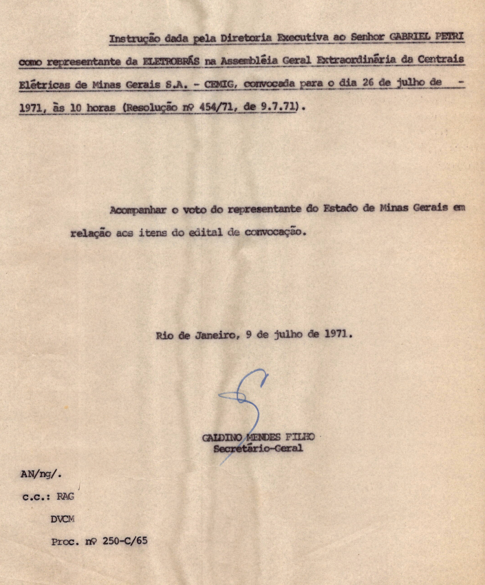 Registros da Assembleia Geral Extraordinária da CEMIG de julho de 1971