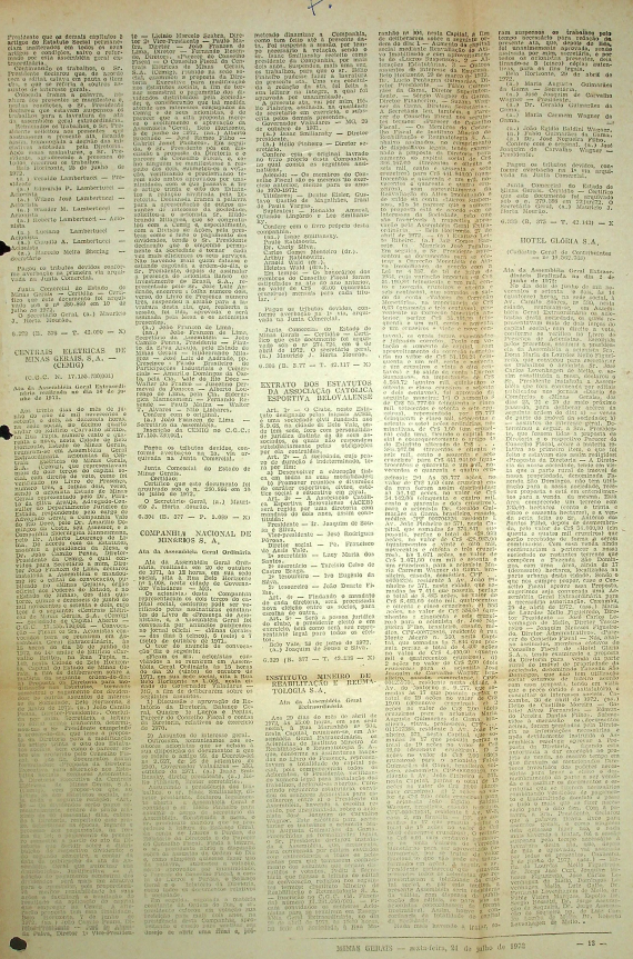 Registros da Assembleia Geral Extraordinária da CEMIG de junho de 1972