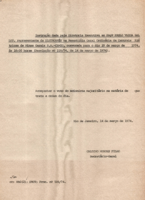 Registros da Assembleia Geral Extraordinária da CEMIG de março de 1974