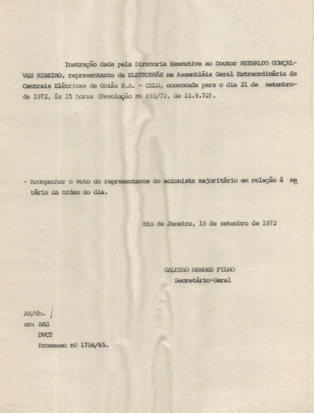 Registros da Assembleia Geral Extraordinária da CELG de setembro de 1972