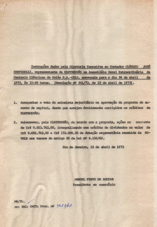 Registros da Assembleia Geral Extraordinária da CELG de abril de 1973