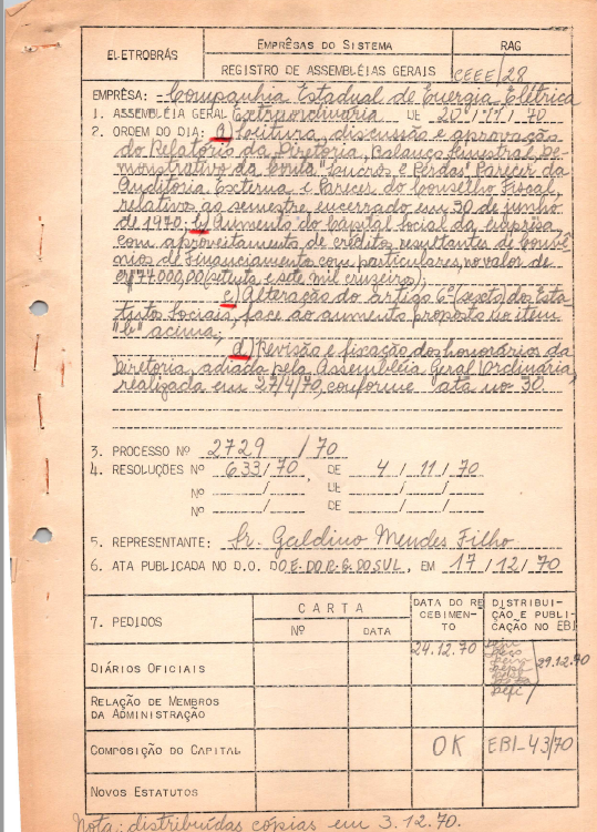 Registros da Assembleia Geral Extraordinária da CEEE de novembro de 1970