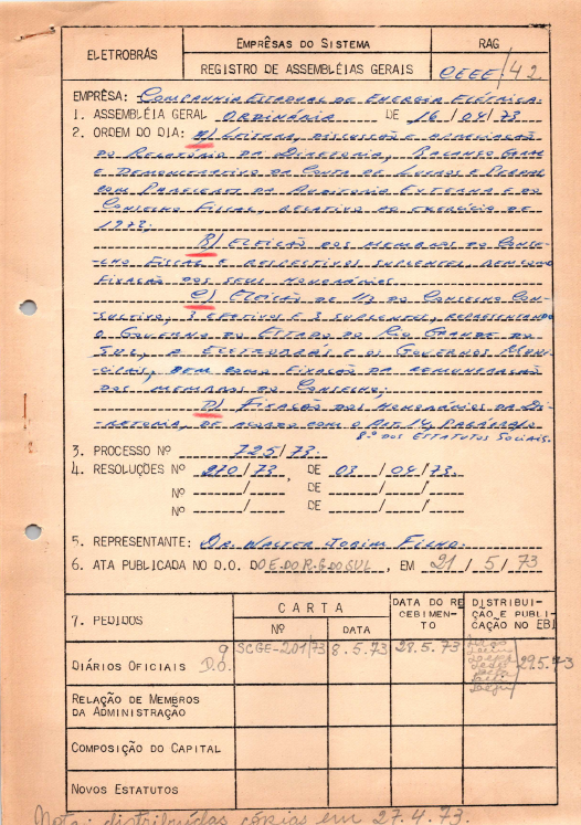 Registros da Assembleia Geral Ordinária da CEEE de abril de 1973
