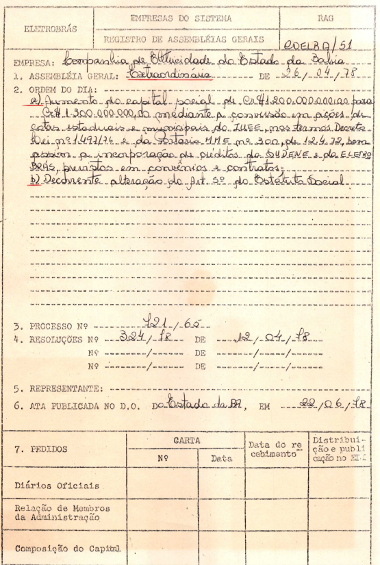 Registro da Assembleia Geral Extraordinária da COELBA de abril de 1978