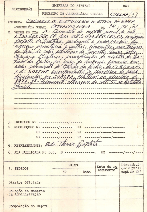 Registro da Assembleia Geral Extraordinária da COELBA de agosto de 1978