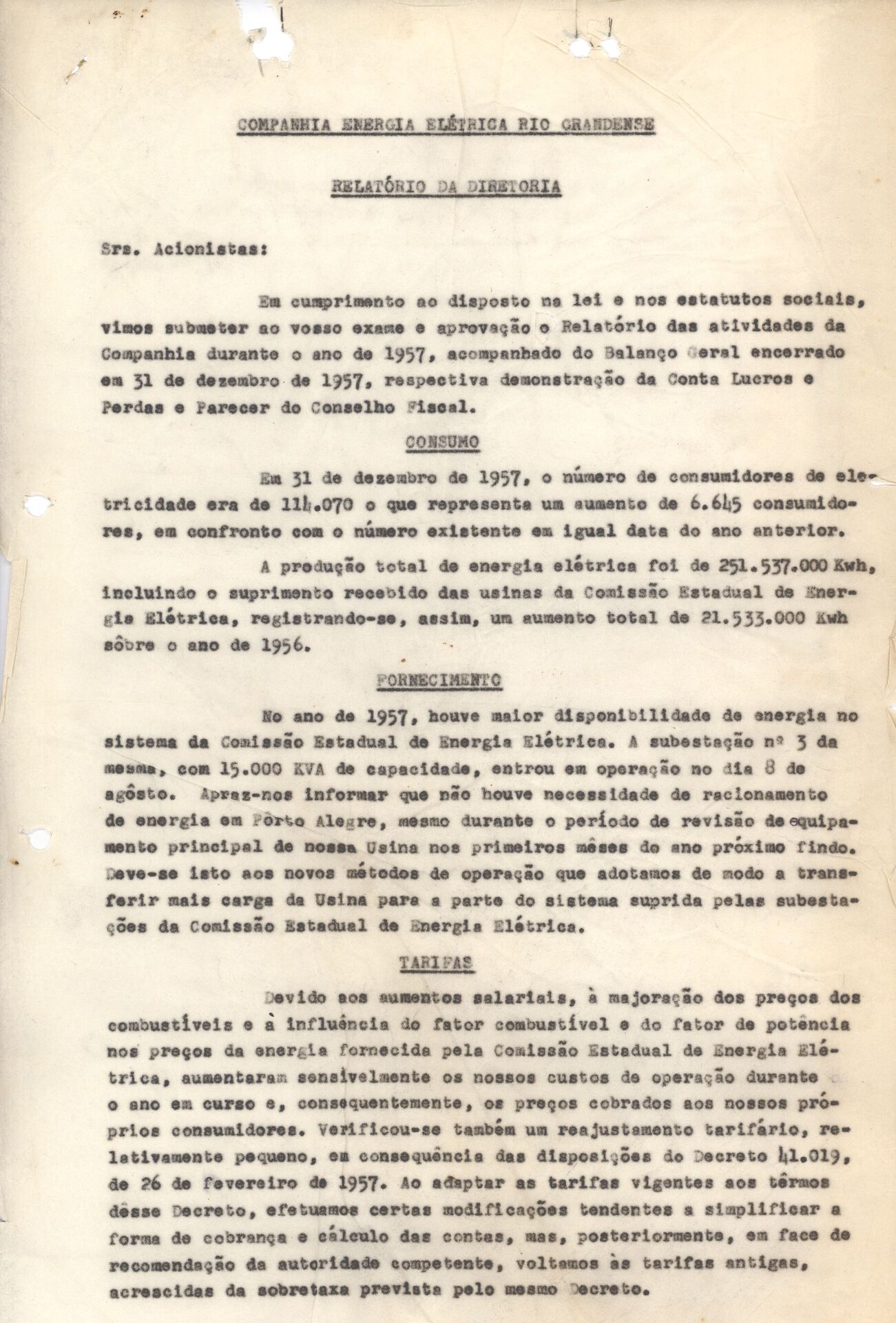 Documentos referentes aos relatórios produzidos pela Diretoria da Companhia de Energia Elétrica Rio Grandense, destinados ao conhecimento dos acionistas, contendo informações sobre o desempenho administrativo, financeiro e operacional da empresa, bem como os resultados de seus principais processos e atividades no período.