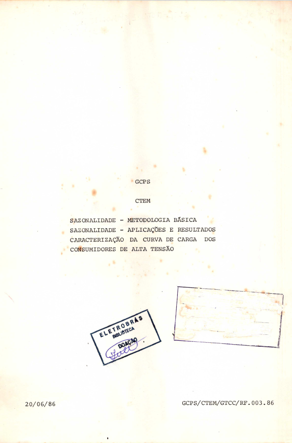 Documentos produzidos pelo Grupo Coordenados do Planejamento do Sistema Elétrico - GCPS abordando curvas de carga, sazonalidade, projeções de mercado, relação de consumo por classe, perda de energia elétrica, demanda máxima anual, entre outros.